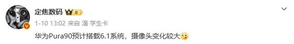 2026-01-29 17:16:50 发布传华为Pura 90系列二季度发布 或搭载鸿蒙6.1系统