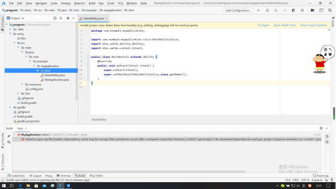 Gradle's dependency cache may be corrupt (this sometimes occurs after a network connection timeout.)