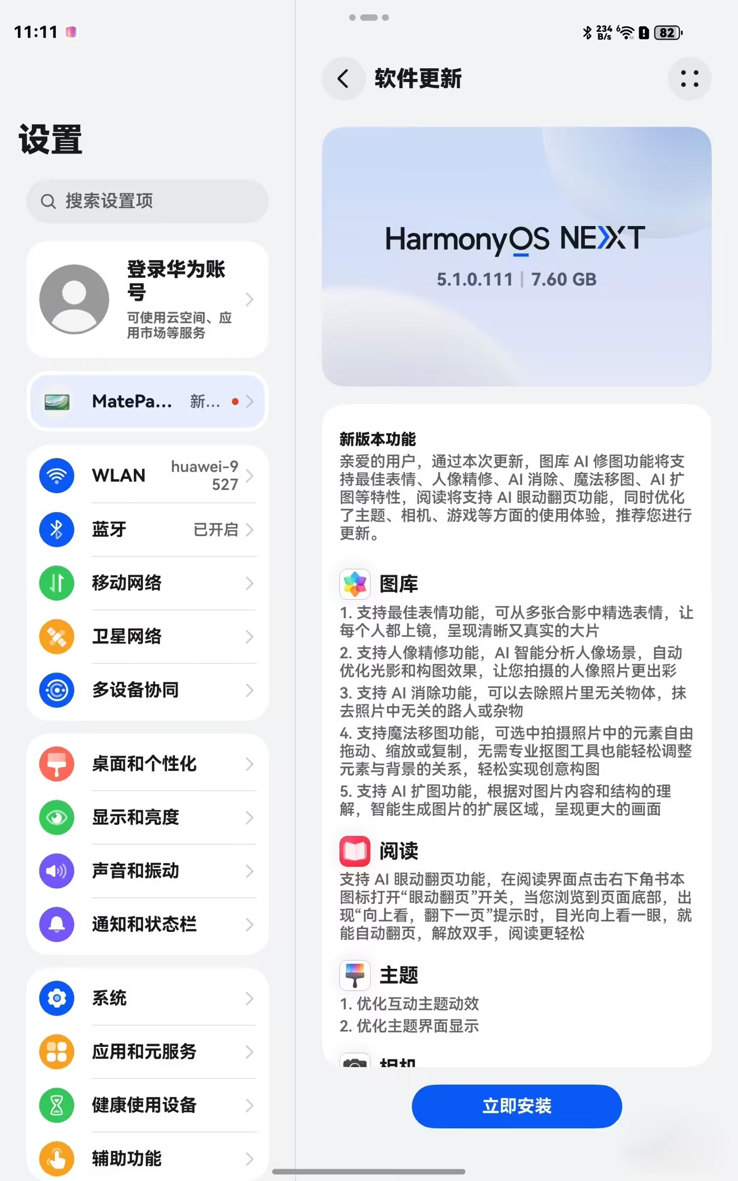 图库支持人像精修、AI 扩图,华为 MatePad Mini 平板获鸿蒙 5.1.0.111 更新