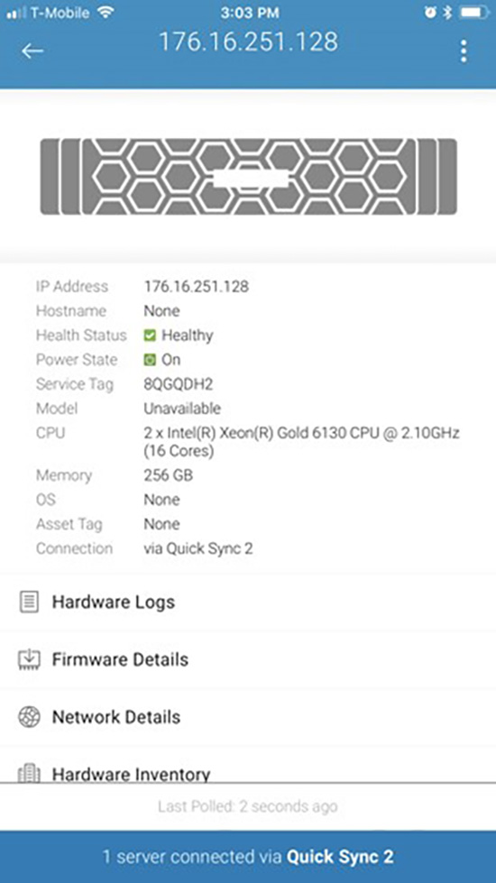 通过使用OMM应用程序,用户可以在任何地方访问资源清册、运行状况和系统日志(如果他们有移动设备)。它们还可以通过Quick Sync 2 模块或Quick Sync挡板,或在旧PowerEdge服务器上借助的iDRAC,在数据中心地板上配置、监测或修正PowerEdge服务器。通过对服务器的快速访问,IT团队可以更快地做出响应,更快地部署单元,而不必拖拽数据中心的崩服务器急救车。