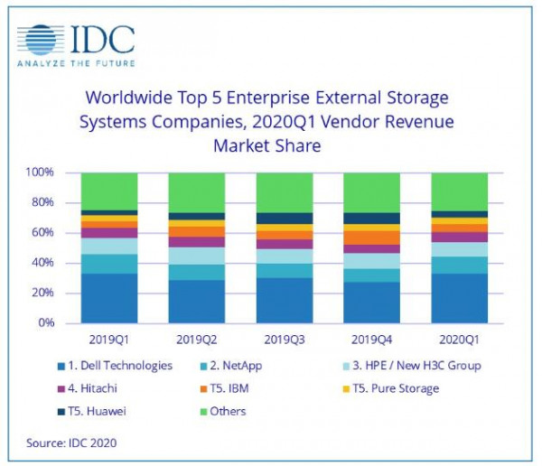 IDC:2020年一季度全球企业外部OEM存储系统市场收入下滑8.2%