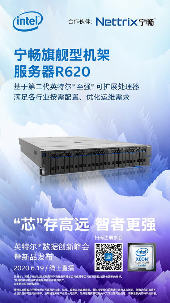 6月19日,英特尔® 数据创新峰会暨新品发布,以线上直播形式举办。服务器新锐厂商宁畅作为英特尔合作伙伴,受邀并携旗舰机型R620参加本次大会。