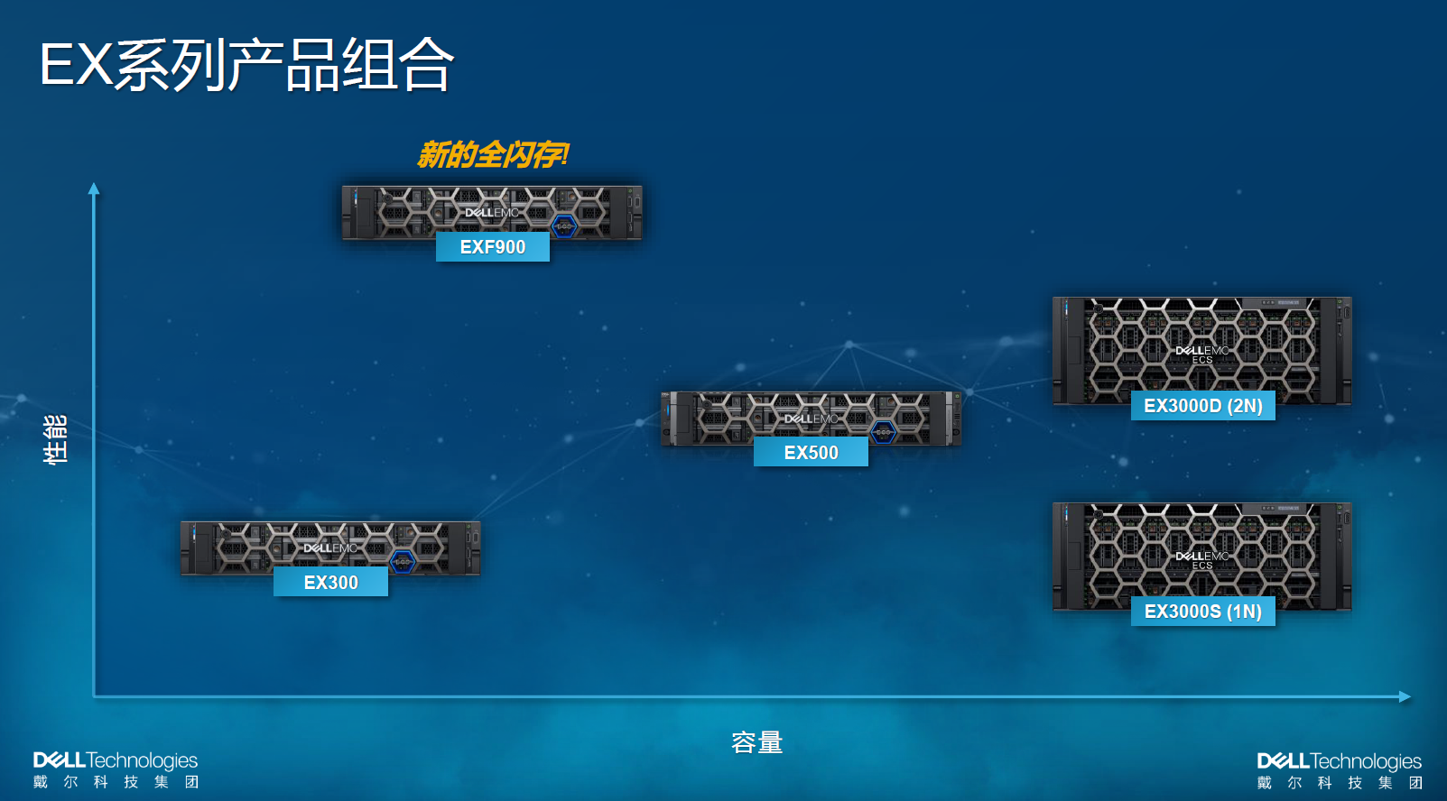 目前戴尔易安信提供了包括EX300、EX500、EX3000和全闪存EXF900在内的众多产品。其中EX300为小规模企业设计,在业务起步阶段感受性能,并满足未来扩展需求定位的。EX500拥有出色的经济性与密度,为ECS一体机产品组合注入了更高的灵活性;EX3000是大规模部署,可轻松扩展到EB规模。EXF900是全新的全闪产品,提供3.84TB全闪硬盘,并支持2.94PB规模化的扩展,为包括AI、机器学习、IoT和实时分析等全新工作负载提供了有力的支持。