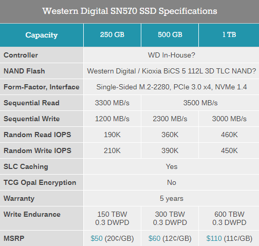 近期西部数据对旗下WD Blue系列固态硬盘进行更新,发布WD Blue SN570 NVMe SSD固态硬盘,从产品序列SN570可以看作针对SN550的迭代产品,西数官方宣称SN570为创作者储存素材、媒体设计,具有较高的可靠性。产品整体采用2280标准规格,兼容性较强,设计容量为250GB、500GB、1TB三种,耐用度分别为150TBW、300TBW、600TBW。