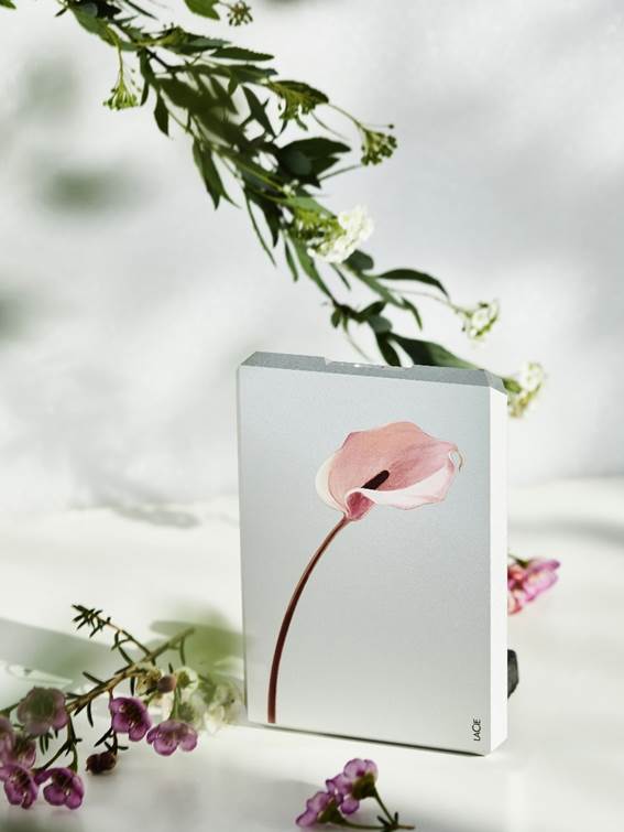 粉色马蹄莲象征永恒的爱恋,结合LaCie棱镜系列自身精致的设计与喷砂工艺,更加彰显出一股优雅大气、圣洁虔诚的气质。这款来自橘子造物所主理人特别为LaCie手绘设计的硬盘,在颜值上一改硬盘传统风格,满足女神们对产品的颜值需求,同时优秀的存储性能也时刻在线。