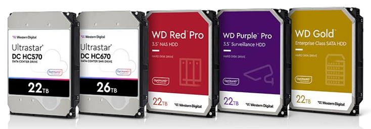 从左到右依次为:西部数据 22TB Ultrastar DC HC570 HDD、26TB Ultrastar DC HC670 UltraSMR HDD、WD Red Pro 22TB HDD、WD Purple Pro 22TB HDD、WD Gold 22TB HDD随着越来越多的云服务提供商将SMR添加到他们的数据中心发展路线之中,26TB的容量点创新将成为他们加快部署的一个重要转折点,而22TB CMR和26TB UltraSMR HDD中的大部分产品将于2022年夏季上市。