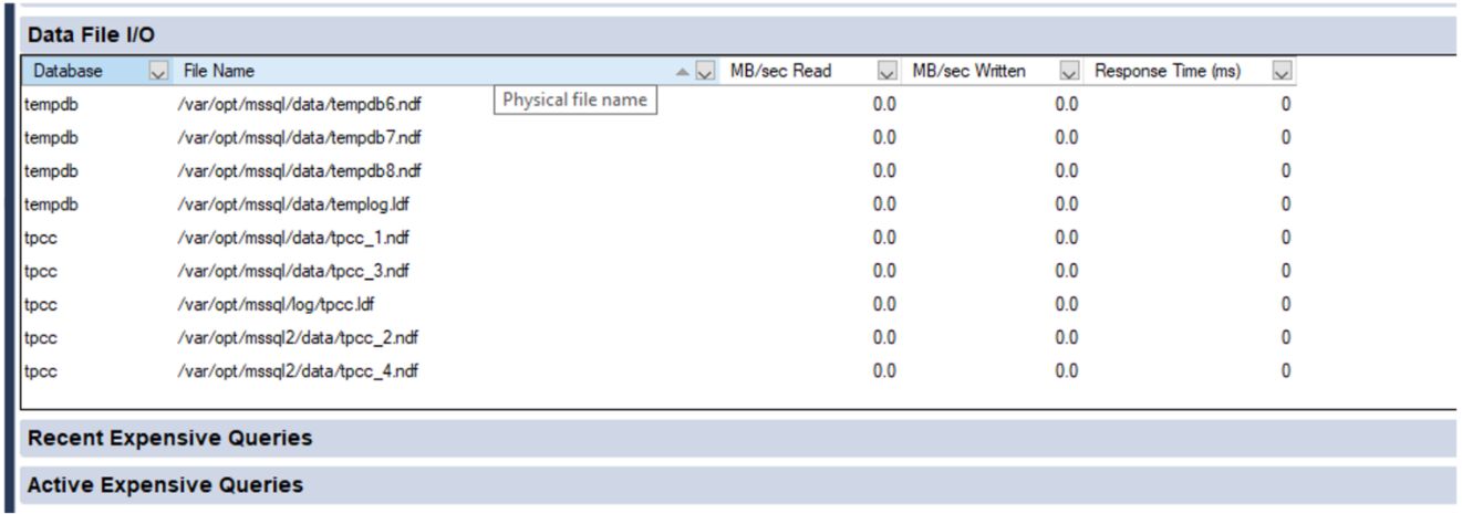 让我们通过一个端到端的实例快速了解一下相关情况。SQL Server Management Studio一个熟悉的页面显示了构成我们tpcc数据库的文件和文件夹。