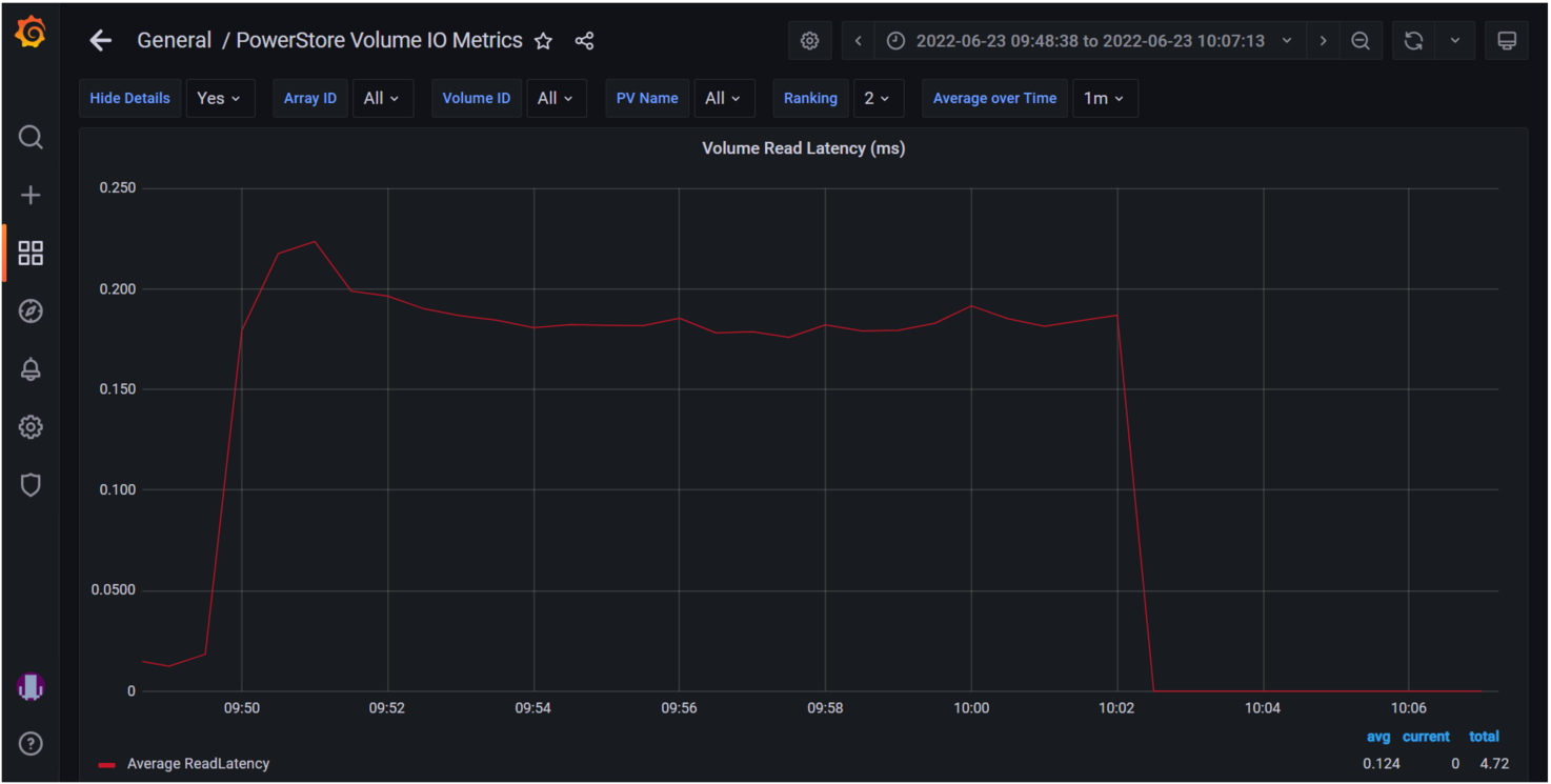 您可以选择任何一个图表进行进一步的查看。下面选择的是卷读延迟(Volume Read Latency)图表。