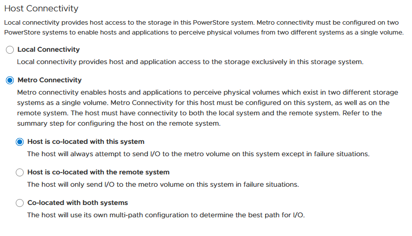 · 主机与远程PowerStore系统位于同一地点——表示该主机是远程主机(高延迟),主机应该获得ALUA主动/非优化路径。
