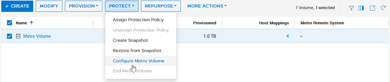 在PowerStore Manager中设置好主机后就可以开始配置城域卷。这在单个PowerStore集群上只需几个步骤即可完成:
