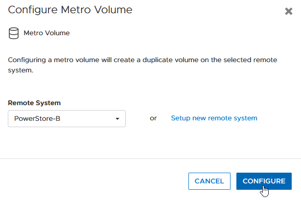 volume -name MetroVolume-Uniform configure_metro -remote_system_name PowerStore-B