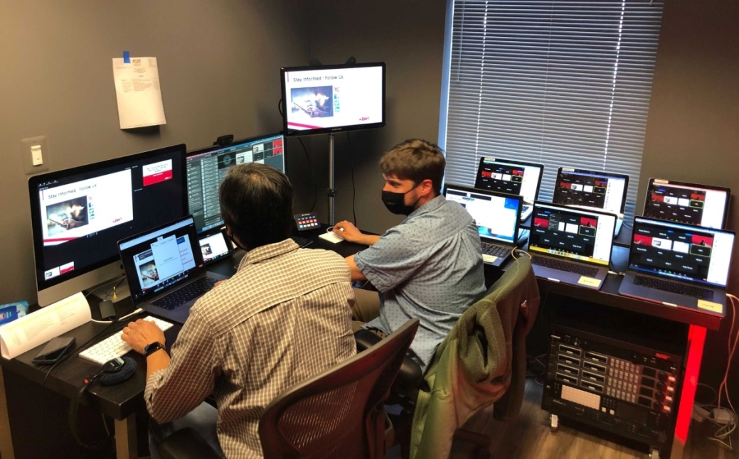 Brooks Moore解释道:“在新冠肺炎疫情和停工的情况下,我们真的需要进行调整,以便能够继续帮助客户传达他们的信息,尽管我们无法到现场进行制作。我们做的其中一件事是创建了一个虚拟控制室,让我们可以将预先录制的内容和现场活动结合起来。”