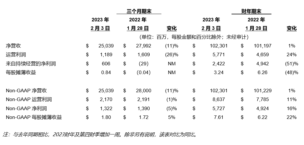 • 全年营收创历史新高,达1,023亿美元,同比增长1%;第四财季营收为250亿美元。