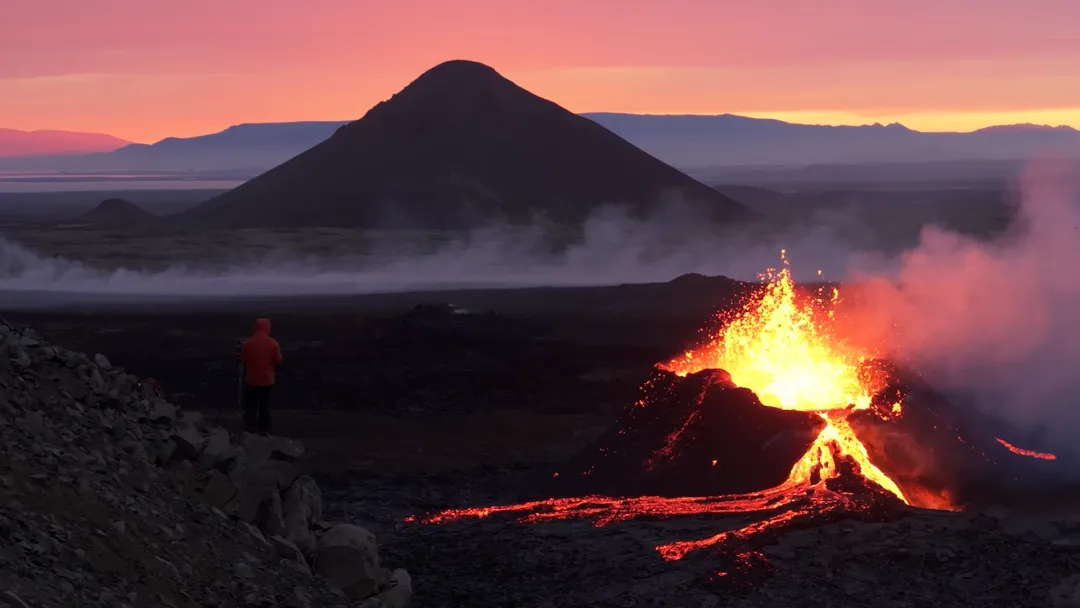 活火山附近的一座火山岩上,苏铁正在拍摄