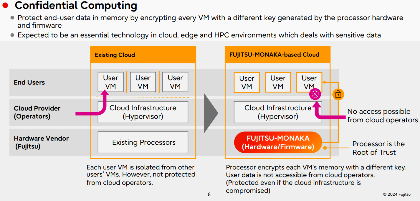 富士通还为Monaka处理器规划了更广泛的应用领域。除了高性能计算外,处理器还将广泛用于数据中心和边缘应用,富士通希望通过Monaka复兴其大型机业务,并逐步放弃SPARC架构。