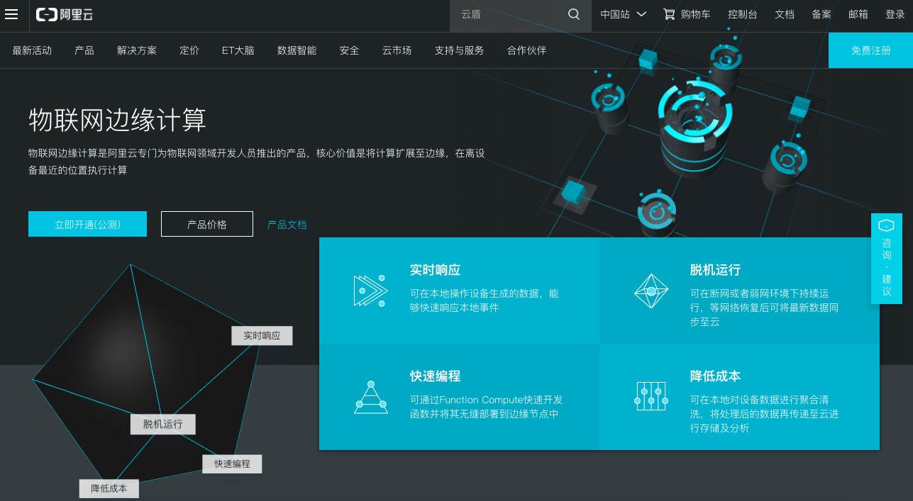 近日,阿里云IoT边缘计算产品Link Edge正式公测。Link Edge将阿里云的计算能力扩展至边缘,在离设备最近的位置执行计算,提供安全可靠、低延时、低成本、易扩展的本地计算服务,能够大大提升处理效率,减轻云端的负荷,提供更快的响应,将需求在边缘端解决,是IoT服务不可缺少的环节。