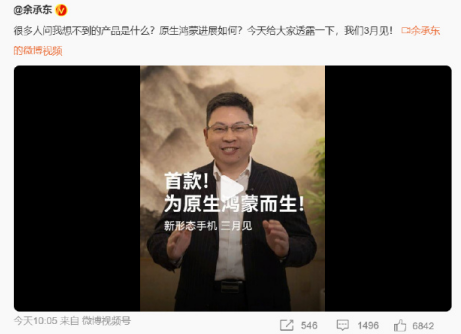 在即将到来的3月,华为将揭开一款全新手机的神秘面纱。华为常务董事、终端BG董事长、智能汽车解决方案BU董事长余承东在微博上发布的视频中预告,这款名为“新形态手机”的产品