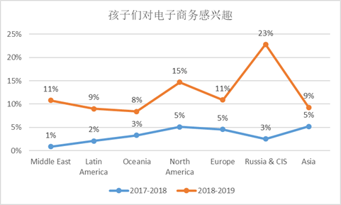 不同区域孩子们对电子商务表现出的兴趣