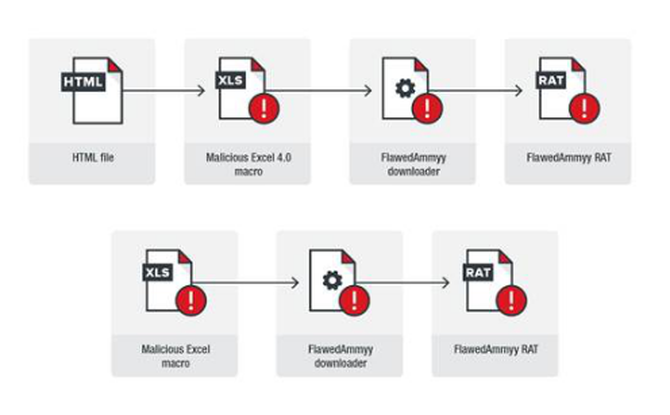 6月11日,TA505网络间谍组织针对阿联酋,沙特阿拉伯和摩洛哥发动了垃圾邮件攻击活动,本次攻击活动使用的垃圾邮件附件是.html或者.xls文件。附件HTML文件运行后,首先会下载包含恶意Excel 4.0宏的Excel文件,执行恶意宏以后,其会下载FlawedAmmyy安装包文件并安装FlawedAmmyy RAT。