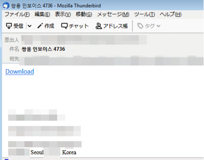 就在同一天,研究人员还截获了针对韩国发动的垃圾邮件攻击活动,与之前攻击活动不同的是,此次邮件中并不包含附件,而是在邮件正文中嵌入了恶意URL,一旦用户访问恶意URL,其会下载包含宏病毒的.doc和.xls文件,最终的目的同样是下载FlawedAmmyy RAT。