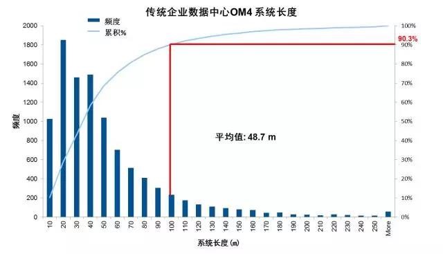 图1. 传统企业数据中心OM4系统长度分布