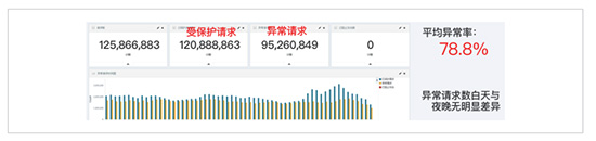 某公示系统,全体24小时遭受爬虫的高强度访问,爬虫访问占比超过78%。