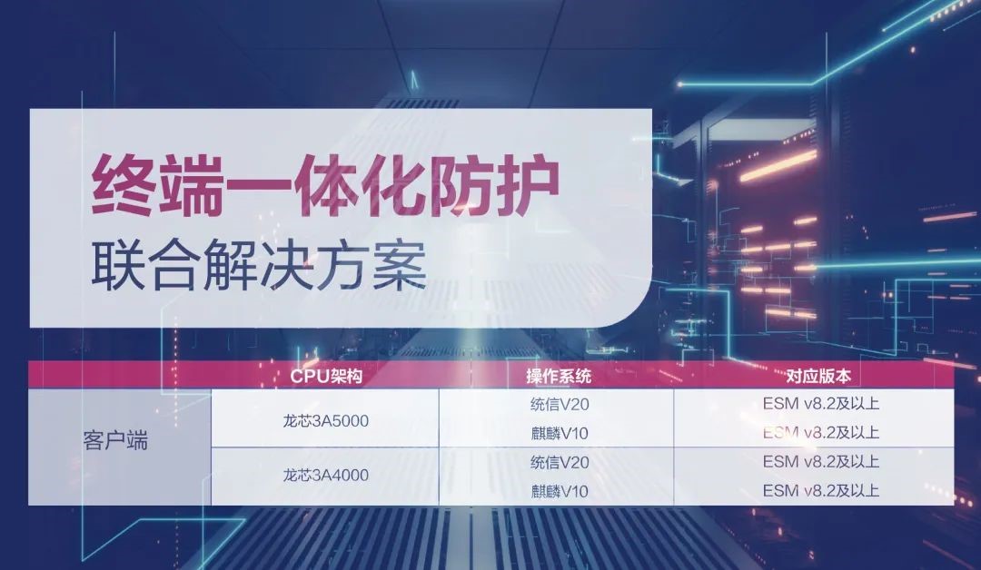 本次适配是龙芯中科与亚信安全在生态、产品、业务全方位交流,深度合作的成果,以此形成的基于龙芯平台的终端一体化防护解决方案可应用于智慧政务、数字金融、关键信息基础设施等重要领域的信息安全建设。该方案具有以下优势特色: