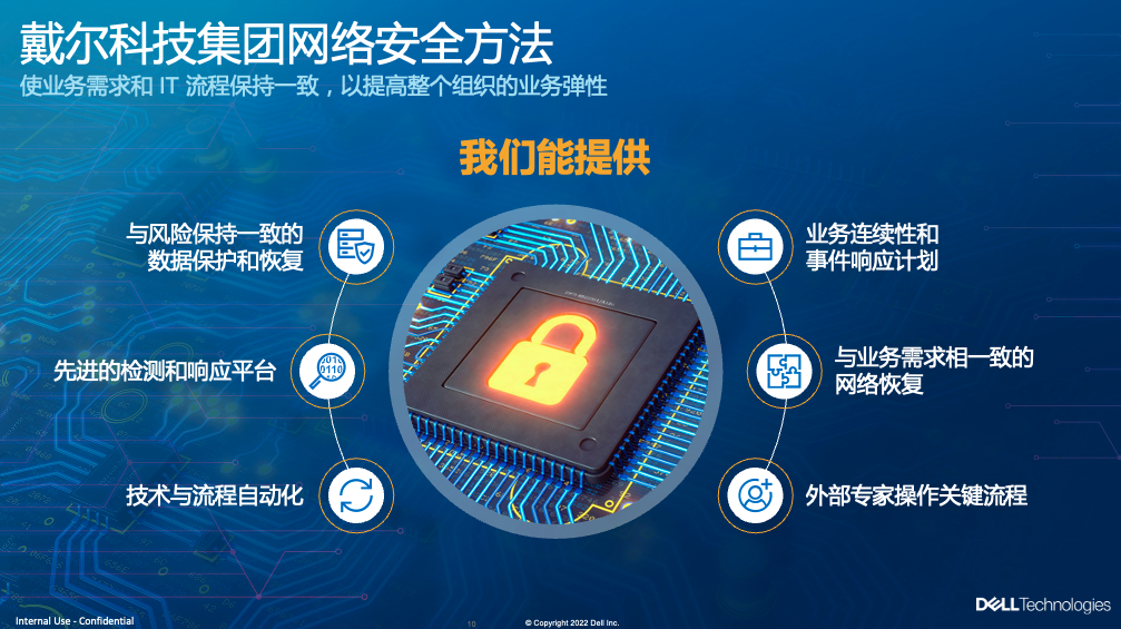 戴尔认为,现代安全必须是内置的、统一的、情景关联的。换句话说,安全策略和技术必须与体系结构、应用负载以及业务目标相统一。