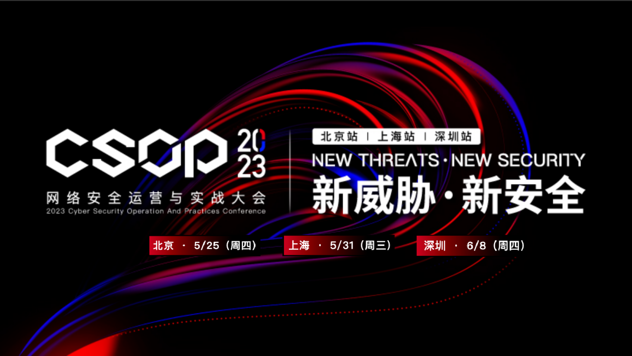 2023年,CTIC情报大会焕新升级,并正式更名为“网络安全运营与实战大会(CSOP)”。本次大会将延续往届的高水准,在北京、上海、深圳三地依次举办,拓宽时间空间跨度,汇聚多方观点碰撞,打造安全运营盛宴。