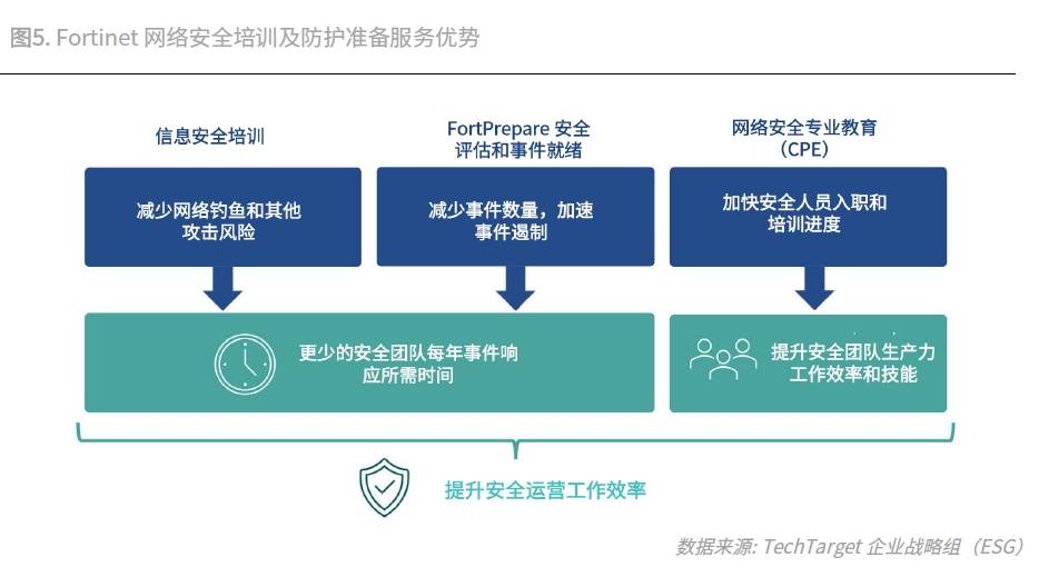 培训与准备服务:FortiPrepare和FortiResponse等提供了丰富的主动安全防护与服务选项,助力用户主动评估并优化其安全态势,员工恶意链接点击率降低84%,安全团队入职培训时间显著缩短。