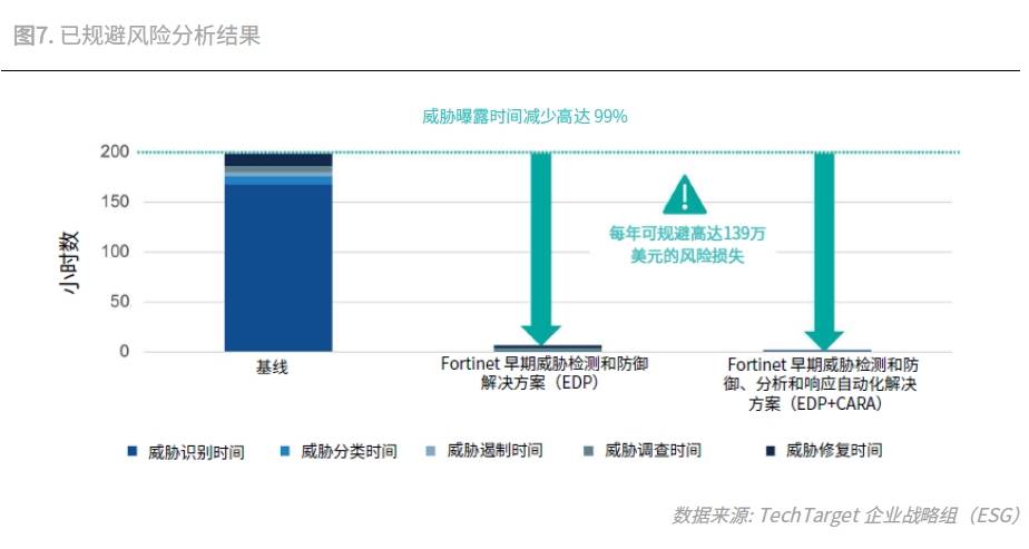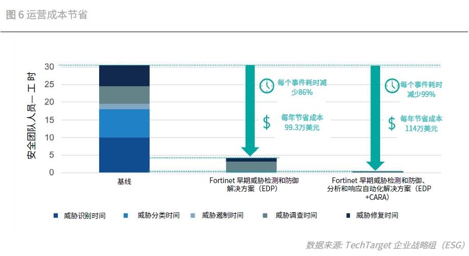 运营成本节省。Fortinet的自动化SOC解决方案高度自动化、智能化,显著降低了人力需求。据ESG报告,部署EDP技术的组织,单次事件平均耗时锐减至约14%(节省86%时间),提高了处理效率,降低了运营成本。同时,Fortinet的托管服务也提供了经济高效的安全运营方式。
