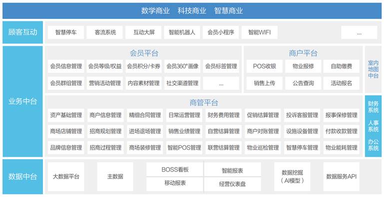 除此之外,针对商业地产中普遍存在的平台相对封闭、数据有限、信息孤岛等问题,联想推出了智慧商场运营管理方案,力图以统一的数据平台为管理提效,并通过“智慧商场+智能大屏+资产管理+数据中台+手机报表”的组合全面实现管理业务的线上化,打造商业地产智慧化的运营管理体系,提高商场运营能力。