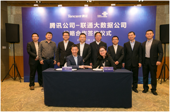 (图为联通大数据有限公司与腾讯公司签署战略合作协议)