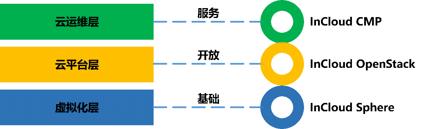 纵观国内主要的私有云厂商,私有云产品体系多被划分为虚拟化层、以OpenStack为代表的云平台层,以及最上面的云运维层。