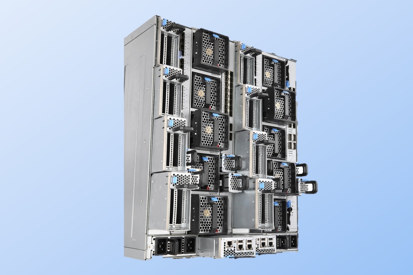 浪潮I9000刀片服务器系统是浪潮为满足企业级客户关键业务、存储类应用及新应用需求而推出的第二代融合架构产品,支持2路刀片向4/8路堆叠,4路刀片节点最大支持12TB内存,可组建Scale-up架构并拥有极致的内存计算能力,内存容量和性能是同类产品2-3倍,全面支持NVME存储加速方案,满足关键业务对IO吞吐的极致需求,同时四路刀片可平滑升级为八路刀片节点,最大限度保护客户投资,保障关键业务平稳升级;在扩展性方面,I9000具备业界唯一的后置IO扩展模块,单刀箱可支持多达16个标准PCIE设备,满足不同应用的扩展需求。