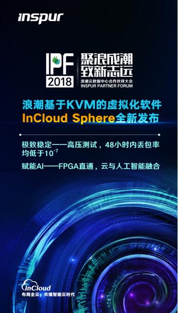 4月26日,在IPF2018浪潮云数据中心合作伙伴大会上,浪潮强调 “智慧计算”时代已经到来,作为智慧计算时代的IT核心基础设施,云计算将持续为企业数字化升级提供平台支撑。作为浪潮云计算业务的核心举措,此次大会上发布了其全新的基于KVM的虚拟化软件InCloud Sphere企业版,新版本提供了强大的KVM底层开发能力,实现了对开源虚拟化技术更好的支持。