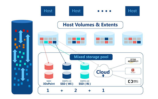 浪潮智能全闪G2-F的闪存分层功能示意图