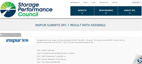 浪潮中端存储AS5500G2在SPC-1?基准测试中的成绩排名