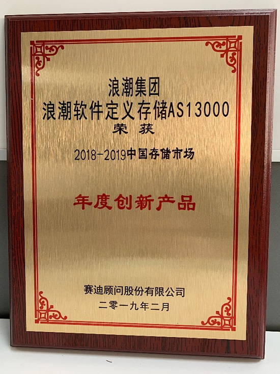 浪潮软件定义存储获得“2018-2019中国存储市场年度创新产品”奖项