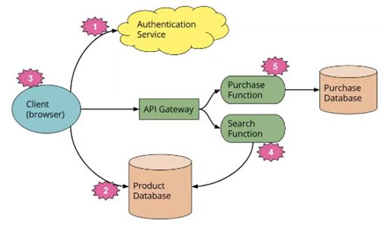 最后,我们可以把购买的实现替换成另一个独立的Faas函数,安全的原因吧,这也是由API网关给引入的。在使用FAAS时,把不同的逻辑要求,拆分成独立的部署组件是一种很常见的方法。