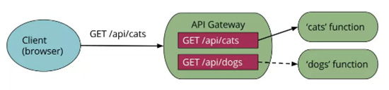 API网关是一个HTTP服务器,其中路由和负载点定义在配置中,并且每个路由与处理该路由的函数关联。当API网关收到请求后,它会找到与请求匹配的路由配置,来调用相关的FaaS函数。API网关允许从HTTP请求参数映射到FaaS函数的更简洁的输入,或者让HTTP请求原封不动得通过,FaaS函数将执行其逻辑并将结果返回给API网关,而API网关又将此结果转换为HTTP响应,并将其传递回原始调用方。