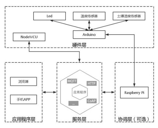 相比于一个物联网系统,无非就是多了一层硬件层以及可选的协调层。