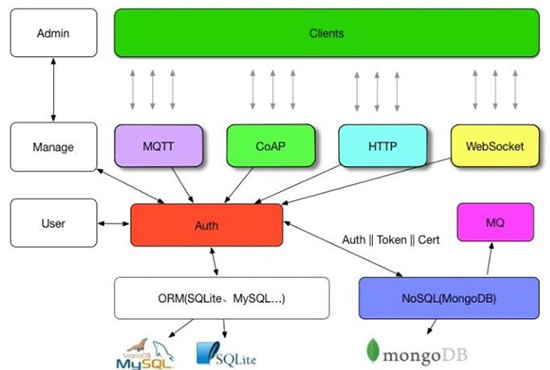 使用Node.js + Node-CoAP + MQTT.js + MongoDB + Express搭建了一个支持多协议的物联网: