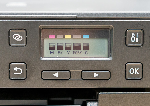 耗材方面,因为这是一款彩色喷墨打印机,所以提供了4+1的耗材配比,也就是CMYK的彩色染料来满足彩色打印,和一支 单独的BK来满足日常的黑白打印需求。耗材更换也十分方便,一按一拉就可以取下耗材。