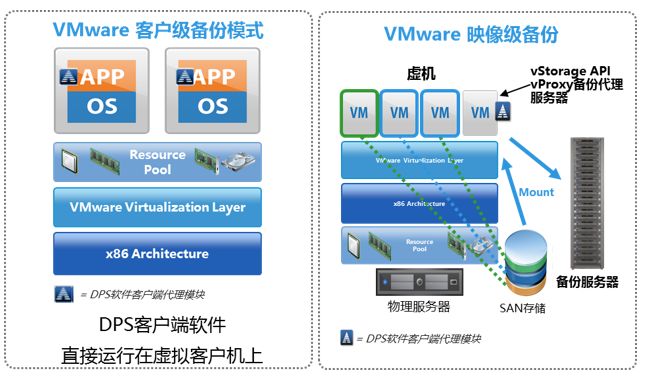 DPS4VM,即Data Protection Suite for VMware,是戴尔易安信专为VMware环境推出的纯软件数据保护解决方案,包括备份和恢复、连续数据保护、监视和分析,以及搜索功能,可为VMware环境提供端到端的数据保护,在虚拟化及云环境中实现简化的部署和管理。