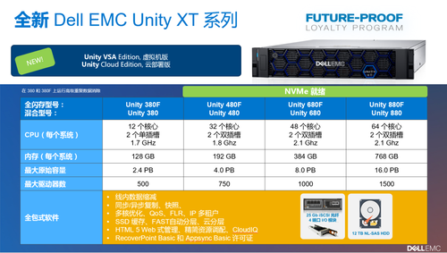 答:Unity XT计划从6月27日开始正式接受订单,对业务系统具有更高性能需求的小伙伴儿们可以开始准备活动了。另一方面,当前在售的各型号Unity产品还将并存销售较长的一段时间,维保服务根据惯例还将在最终停产后延续至少五年,保证最后一台售出的Unity也能在正常生命周期内享受原汁原味的戴尔易安信存储原厂服务(注1),您完全可以放心购买。