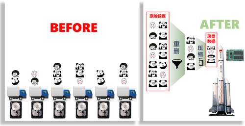 答:回望传统转轴磁盘时代,由于单个磁盘的性能有限,存储性能要求苛刻的用户往往需要将数据打散在大量磁盘上,通过提升并行度来提升性能,造成存储空间的浪费,这叫做“空间换性能”;而在SSD闪存时代,由于磁盘单体的性能已经有了30倍以上的提升,在保证性能的基础上如何实现数据缩减(即降低实际写入磁盘的数据量)成了全闪存存储的设计重中之重,这叫做“性能换空间”。因为: