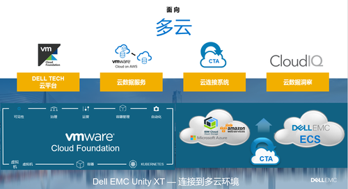 答:是的。在现代化数据中心时代,很多客户需要同时面对私有云和不同供应商的公有云环境,那么新一代存储产品也需要有机地融合到这样的“多云”环境中。Unity XT产品设计理念中便包含了面向“多云策略”的数据服务与部署方案,比如: