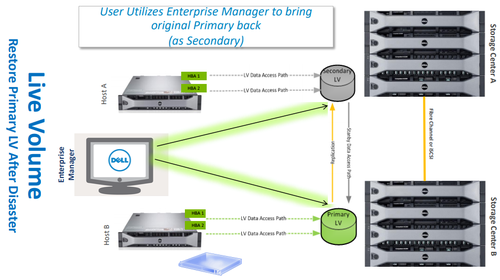 2Live Volume可在多阵列环境中提供一个额外的虚拟化层,作为“存储虚拟机管理程序”动态地管理多个SC系统中的逻辑主机映射。对于主机而言,从表面上看,Live Volume与任何其他内置或SAN连接的驱动器别无二致,但实际上,数据是在两个不同位置之间进行复制的,两个路径上均可以执行读取和写入操作,这意味着可以移动其中任何一个底层卷或使其离线都不会影响业务。