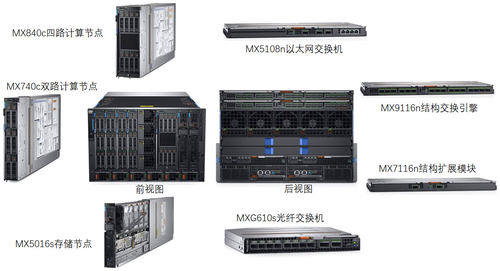 此外,受益于MX7000独特的架构设计,即便出现需要高单节点计算性能的情况,也可直接将双路MX740c节点替换为四路MX840c节点,以提供高计算性能以及大的内存容量。